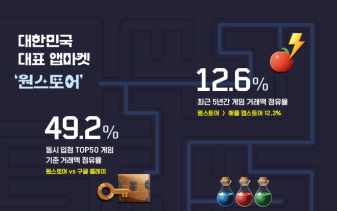 대한민국 대표 앱마켓 원스토어(대표 박태영)가 오늘 주요 운영 성과 지표를 공개하며 국내 2위 앱마켓으로서의 입지를 굳히고 있다고 밝혔다. 원스토어는 빅데...