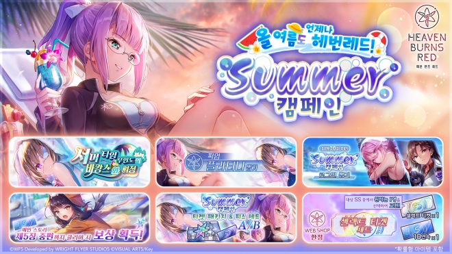 라이트 플라이어 스튜디오 × Key가 2025년 6월 27일(금) 11:00부터 드라마틱 RPG '헤븐 번즈 레드'의 올 여름도 언제나 헤번레드! Summer 캠페인을 개최한다. ...