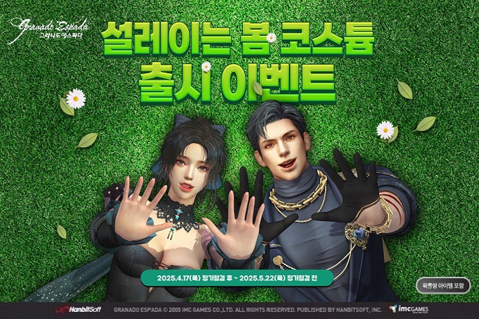 한빛소프트에서 퍼블리싱하고 IMC게임즈에서 개발한 PC 온라인 MMORPG(대규모다중접속역할수행게임) '그라나도 에스파다'가 2025년 봄 시즌 신상 코스튬을 출시...