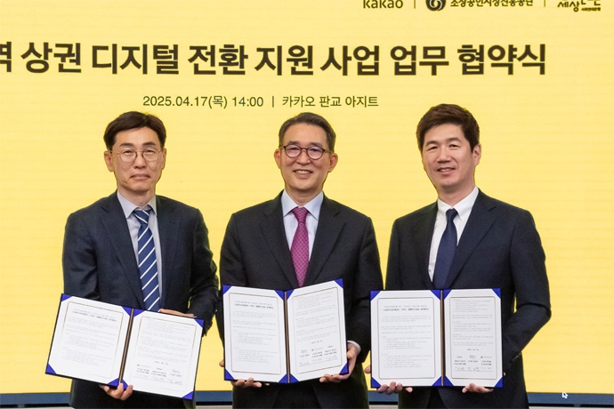 카카오(대표이사 정신아)는 17일 소상공인시장진흥공단(이하 소진공), 사단법인 함께만드는세상(사회연대은행)과 함께 ‘프로젝트 단골’ 업무협약(MOU)을 체결...