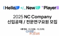 ㈜엔씨소프트(공동대표 김택진, 박병무 이하 엔씨(NC))의 ‘2025 신입사원 공개채용’이 오늘(13일) 접수를 시작한다. 이번 공개채용은 ‘NC Company(엔씨 컴퍼니)’ 통합으로 진행된다. NC Company는 엔씨소프...