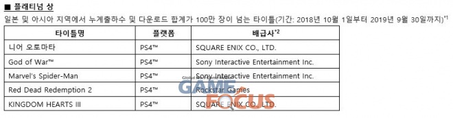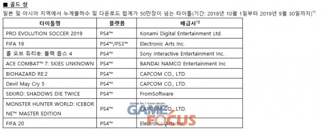 소니인터랙티브엔터테인먼트(이하 SIE)가 'PlayStationAwards 2019(이하 PS Awards)'를 통해 한 해 동안 일본 및 아시아 지역에서 PlayStation 플랫폼으로 발매된 타이틀 중 히트작을 발표했다.