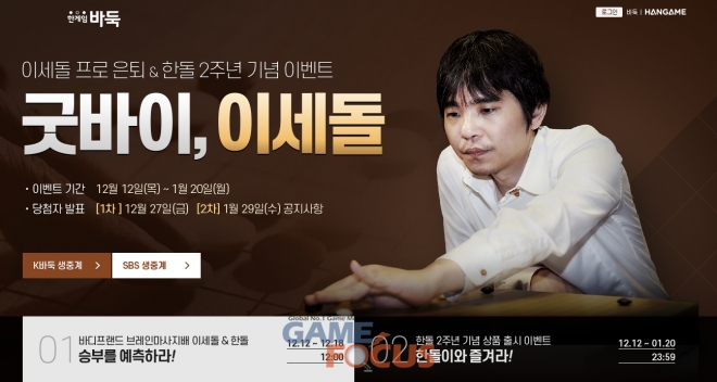 NHN(대표 정우진)이 자사가 서비스하는 '한게임 바둑'에서 이세돌 9단 은퇴와 바둑 AI '한돌'의 2주년을 기념하는 의미로 '굿바이 이세돌' 이벤트를 진행한다.