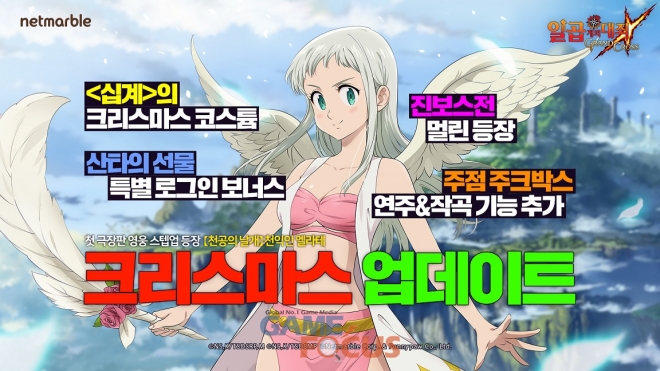 넷마블(대표 권영식)이 모바일 RPG '일곱 개의 대죄: GRAND CROSS(이하 일곱 개의 대죄: 그랜드 크로스, 개발사 퍼니파우)'에 크리스마스 시즌 업데이트를 실시했다.