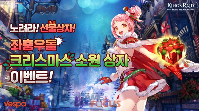 '2019 크리스마스 그린 노트 선물'는 다가오는 25일 '킹스레이드'를 즐기는 유저들에게 전하는 깜짝 메시지와 함께 선물 구성품이 공개되며, 31일까지 게임 내에서 직접 수령할 수 있다.