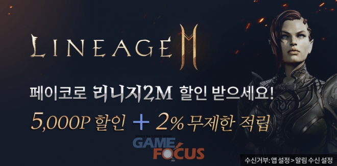 오늘(19일)부터 2020년 1월 14일까지 구글플레이에서 '페이코(PAYCO)'의 선불충전재화인 '페이코포인트'를 결제수단으로 선택 후 '리니지2M' 등 엔씨소프트 게임을 결제하는 모든 이용자는 최초 1회에 한해 5,000포인트를 즉시 할인 받을 수 있다.