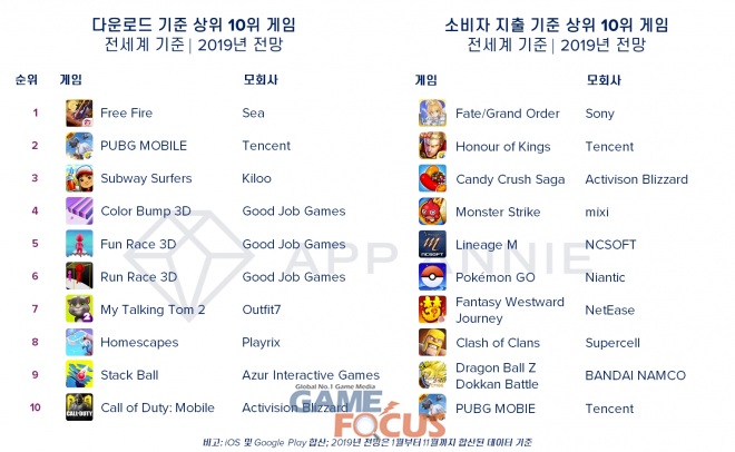 2019년 가장 성장률이 두드러진 모바일 게임앱 TOP 10 순위도 별도 발표