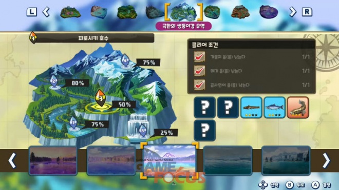또한 도전과제에는 다양한 미션이 준비되어 있고, 각 지역마다 매우 희귀한 보스급 어종도 등장하므로, 플레이어는 도감의 완성뿐만이 아닌, 도전과제의 달성을 목표로 낚시에 도전할 수 있다.