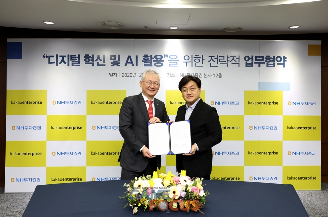 정영채 NH투자증권 대표이사는 "국내 AI기반 플랫폼 및 솔루션 전문 기업인 카카오엔터프라이즈와 파트너가 돼 매우 기쁘다"면서 "이번 양해 각서 체결을 계기로 카카오엔터프라이즈의 우수한 플랫폼 및 콘텐츠와 NH투자증권의 지식과 노하우를 융합하여 새로운 비즈니스 모델을 창출할 수 있을 것으로 기대한다"고 전했다.