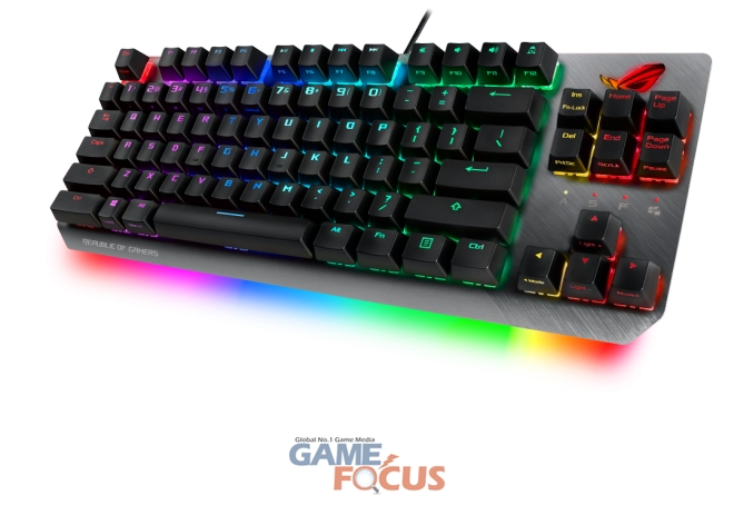 게이밍 키보드 'ROG STRIX SCOPE TKL'은 체리MX 스위치를 채택한 텐키리스 형태의 기계식 게이밍 키보드로써 컴팩트한 디자인과 휴대성을 동시에 추구한 제품이다. FPS장르의 플레이어들을 위해 좌측 하단의 Ctrl키의 크기를 확대하여 보다 정교한 컨트롤이 가능하도록 설계되었다.