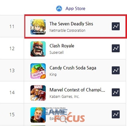 넷마블(대표 권영식, 이승원)의 모바일 RPG '일곱 개의 대죄: GRAND CROSS(이하 일곱 개의 대죄: 그랜드 크로스, 개발사 퍼니파우)'가 출시 일주일만에 미국 애플 앱스토어 매출 11위를 달성했다.