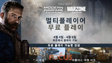 거친 전투 한 가운데 가슴 뛰는 경험을 선사하는 모던 워페어 멀티플레이어 무료 플레이에 참여를 원하는 신규 팬들은 전세계적인 인기를 모으며 순항 중인 획기적 무료 경험, 콜 오브 듀티: 워존(Call of Duty: Warzone)을 다운로드 받아, 기간 중 활성화되는 플레이목록을 선택해 동급 최고의 팽팽한 긴장감으로 가득 찬 게임 플레이를 즐길 수 있다.