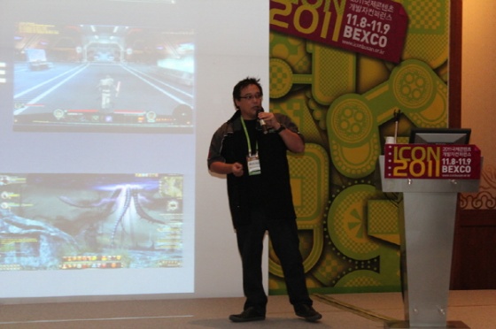 지스타2011이 열리기 이틀 전 부산 벡스코에서는 전세계 개발자들이 모이는 컨퍼런스 '아이콘2011'이 열렸다. 행사 첫날에는 최근 기대를 모으고 있는 TPS '파이어폴'의 개발사 대표 마크 컨이 강연을 실시했다.