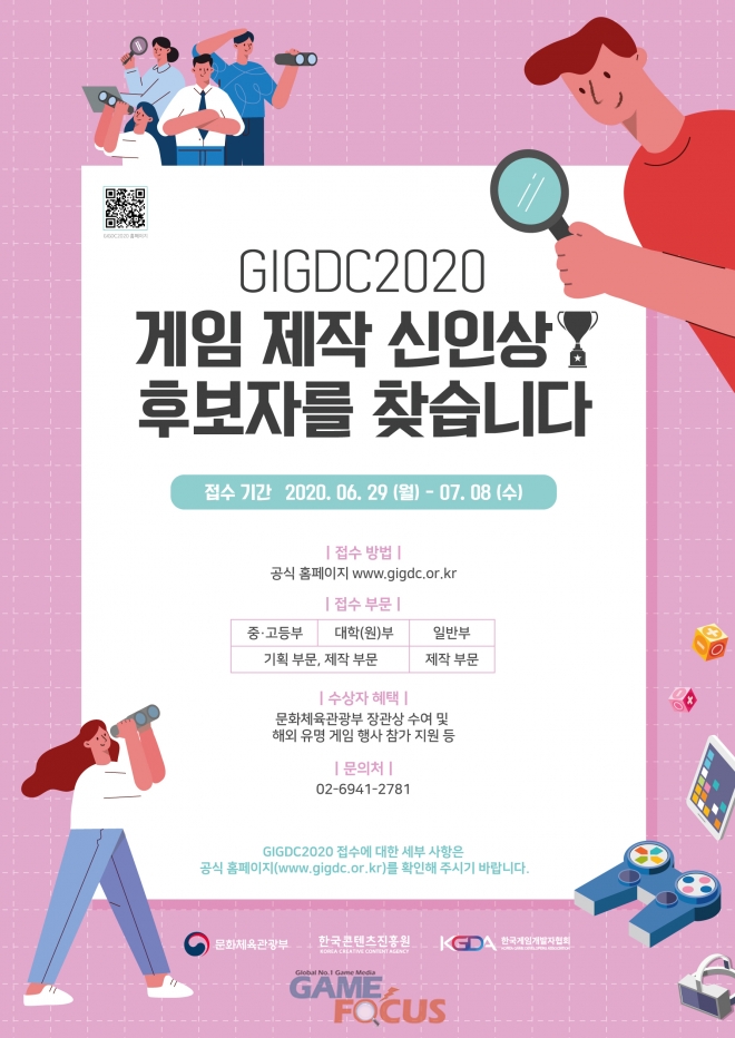 문화체육관광부가 후원하고, 한국콘텐츠진흥원이 주최하며, (사)한국게임개발자협회가 주관하는 ‘게임 제작 신인상 후보’를 찾는 < 2020 글로벌 인디 게임제작 경진대회 (이하 GIGDC2020)> 가 오는 6월 29일 (월) ~ 7월 8일 (수) 까지 10일 간 GIGDC2020 공식 홈페이지를 통해 작품 접수를 진행한다.