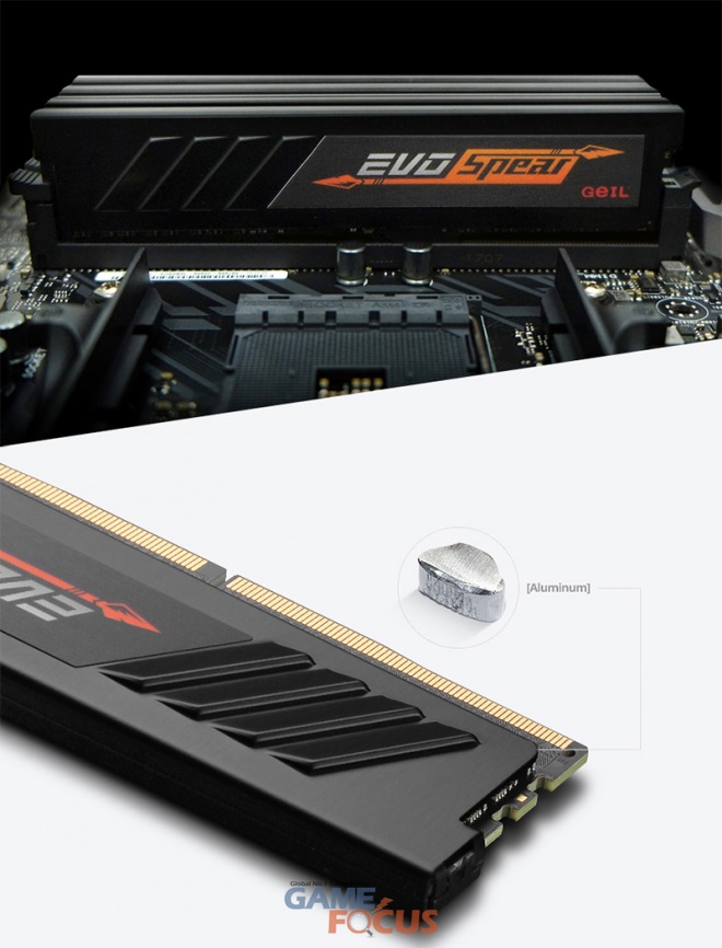 에보 스피어 시리즈는 화려한 RGB LED 와 같은 튜닝 요소를 갖추고 있는 제품이 아니다. 하지만 알루미늄 소재의 히트 싱크가 기본 탑재되어 있어 메모리 모듈 자체의 온도를 효과적이고 빠르게 낮춰주며 나아가서는 사용자의 시스템 내부 전체 온도의 상승을 완화 시킬 수 있다.