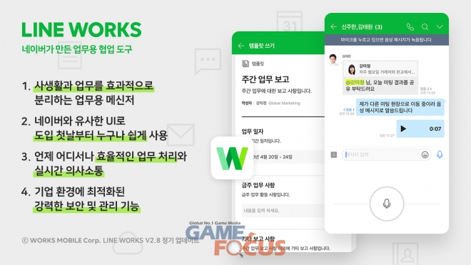 웍스모바일(대표 한규흥)이 '라인웍스'에서 v2.8 정기 업데이트를 통해 비대면 모바일 소통 및 협업 기능을 한층 강화하고, 중소기업 및 소상공인의 손쉬운 가입과 사용을 돕는 상담을 실시한다.