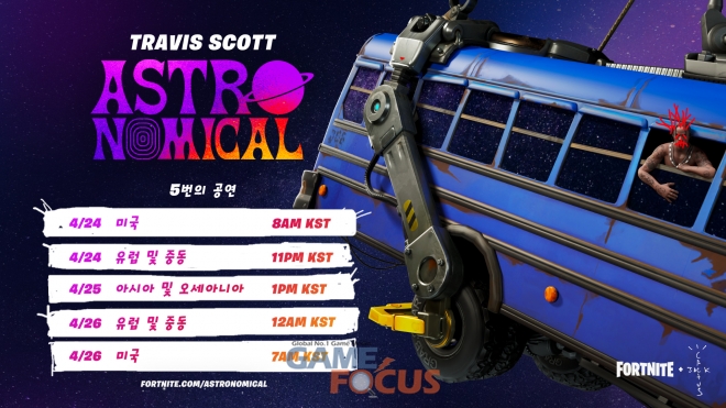 전 세계에서 수많은 팬을 보유하고 있는 트래비스 스콧은 미국 출신의 힙합 뮤지션으로, 이번 '애스트로노미컬' 이벤트를 통해 전 세계에서 최초로 '포트나이트' 이용자들에게 신규 트랙을 공개할 예정이다.