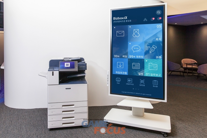 그룹웨어-출력물 보안 관리 솔루션은 한국후지제록스의 문서 커뮤니케이션 기술력을 보여주는 복합기와 기업의 지식자산 관리 플랫폼으로 대표되는 더존비즈온의 그룹웨어 'Bizbox Alpha(이하 비즈박스 알파)'가 만나 기업 내 문서 보안을 강화하고 그룹웨어 사용자의 업무 효율성을 향상시키기 위해 개발된 솔루션이다.