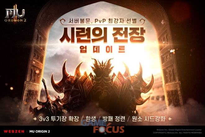웹젠(대표 김태영)이 모바일 MMORPG '뮤 오리진2'에 전 서버에서 PVP 최강자를 가리는 '시련의 전장'을 업데이트한다.
