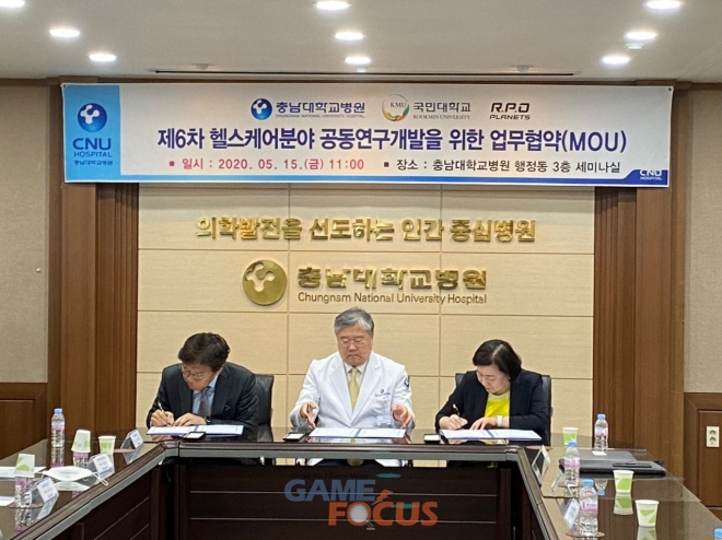 충남대학교병원(병원장 윤환중)이 오늘(15일) 오전, 알피오 플래닛(대표 고경곤)과 국민대학교 산학협력단(단장 신동훈) 간의 헬스케어분야 신기술 공동연구 활동 및 기술정보 교류를 위한 3자 업무협약식(MOU)를 진행했다.