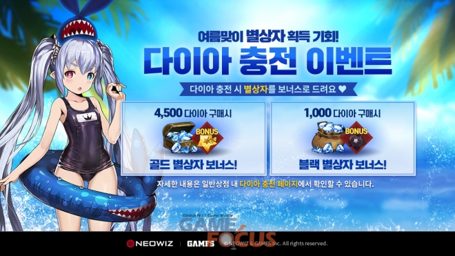 이 외에도 6월 11일까지 다이아 충전 시 5성 스킬북과 5성 용병 랜덤권, 전설계약서 등 푸짐한 아이템을 랜덤으로 받을 수 있으며, 같은 기간 5성 마법형 용병 '프라시아'를 획득할 수 있는 조각 미션 이벤트가 진행된다.