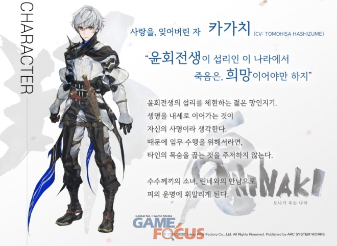 아크시스템웍스 아시아지점은 오늘부터 공식 블로그를 통해 '오니가 우는 나라'에 등장하는 7명의 주요 캐릭터와 10명의 귀화혼에 대한 소개를 매주 정기적으로 공개할 예정이다.