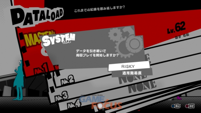 최강의 사신을 쓰러트리는 데 성공하면 다양한 요소를 이어받아 즐길 수 있는 회차 플레이가 해금된다. 레벨과 장비품 등은 물론 소피나 울프가 처음부터 동료가 되고, 어떠한 페르소나를 합체로 만들 수 있는 등의 즐거움이 가득 있다. 또한, 회차 플레이에서는 가장 어려운 난이도 'RISKY'를 선택하여 플레이할 수 있다.
