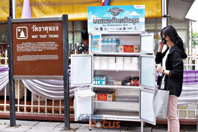 컴투스 태국지사는 오랜 기간 현지에 유저들과 직접 소통해온 노하우를 바탕으로, 지난 15일부터 지역 커뮤니티와 협력해 사원, 빈민가, 대학가 등 방콕 시내 총 6곳에 블레싱 박스를 설치하고 나눔의 기쁨을 함께 하고 있다.