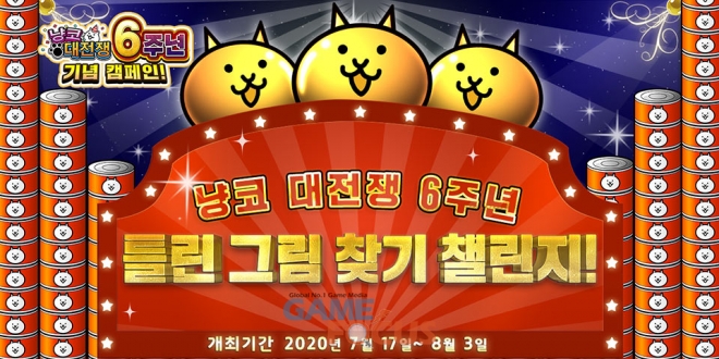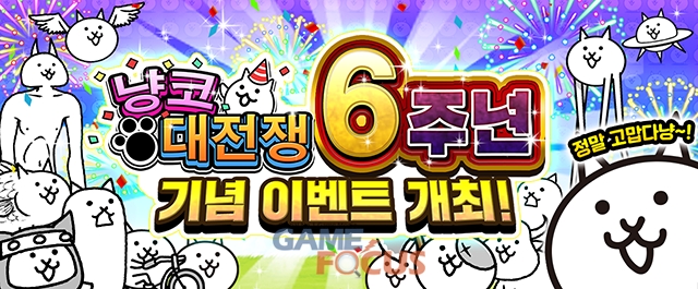 6주년을 기념하여 냥코 대전쟁 한국판 공식 페이스북 페이지에서 캠페인을 개최한다. 틀린 그림이 몇 개인지 정답을 맞춘 유저들 중, 추첨으로 고양이 통조림 6년치 분을 선물한다. 또한 영상의 좋아요, 공유, 재생수의 목표건수 달성으로 유저 전원에게 레어 티켓 1장을 선물한다.