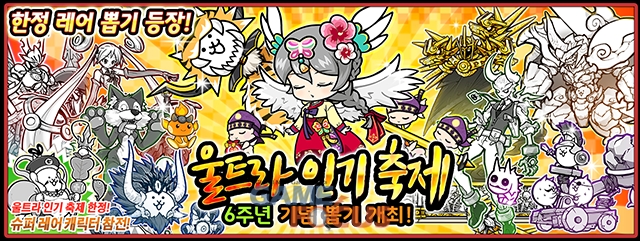 각 뽑기 시리즈의 대표 캐릭터가 참전하는 '울트라 인기 축제'에 한국판 한정 캐릭터 '꼬마 고양이 발키리'가 참전한다. 개최 기간 중에 레어 뽑기 화면을 탭 하면 '울트라 인기 축제' 레어 뽑기를 할 수 있다. 또한 이벤트 개최 기간 중에 레어 뽑기의 '10+1회 연속 뽑기'를 돌리면 울트라 슈퍼 레어 캐릭터를 반드시 1개 이상 획득할 수 있다.