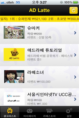 덕분에 애드라떼는 현재 약 100만 명이 넘는 회원을 확보했으며, 약 100여 개의 광고주로부터 러브콜을 받고 있는 상태다. 이중 10~20대 사이 이용자들에게는 선풍적인 인기를 얻고 있다.