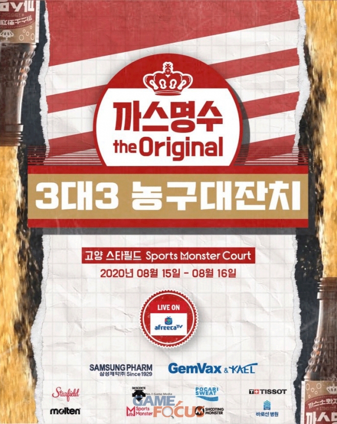 아프리카TV는 오는 15일(토)과 16일(일) 양일간 고양시에 위치한 '스타필드 루프탑 스포츠몬스터 특설 코트'에서 열리는 '까스명수 THE ORIGINAL 3대3 농구대잔치(이하 3대3 농구대잔치)'의 전경기를 생중계한다. 3대3 농구대잔치는 한국3대3농구연맹이 주최하고, 아프리카TV와 한국3대3농구연맹이 공동 주관한다.