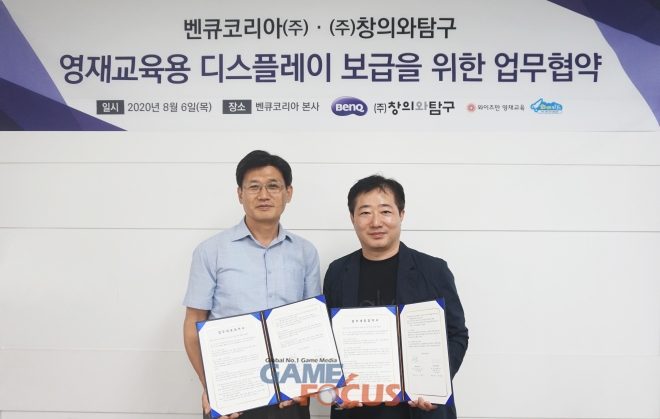 브랜드 벤큐(지사장 소윤석)가 영재 교육 전문 기업 창의와탐구(대표 염만숙)와 8월 6일 '영재교육용 디스플레이 보급을 위한 업무 협약'을 체결했다.