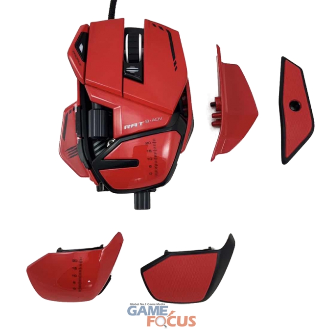R.A.T 8 플러스 ADV는 기계적 느낌이 가미된 R.A.T 8 플러스 일반 모델과 동일한 외형과 구조를 갖췄다. 마치 여러 개의 부품이 맞붙어 이어지 듯 디자인된 외형은 실제로 다양한 부품들을 사용자의 편의성 또는 사용 습관에 맞춰 교체할 수 있는 점 역시 동일하다. 다만, 블랙과 화이트로 나뉘어진 R.A.T 8 플러스 모델과 달리 R.A.T 8 플러스 ADV는 제품 전체를 덮는 붉은 컬러와 포인트로 블랙 컬러가 어우러진 한 가지 색상의 모델만 준비되어 있다.