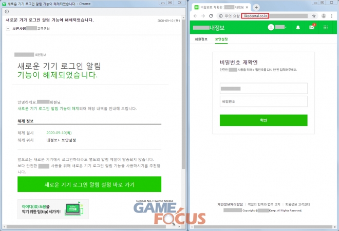 ESRC가 포착한 이번 공격은 국내 유명 포털의 보안 서비스 중 하나인 '새로운 기기 로그인 알림 기능'이 해제되었다는 이메일 공지를 사칭하고 있다.