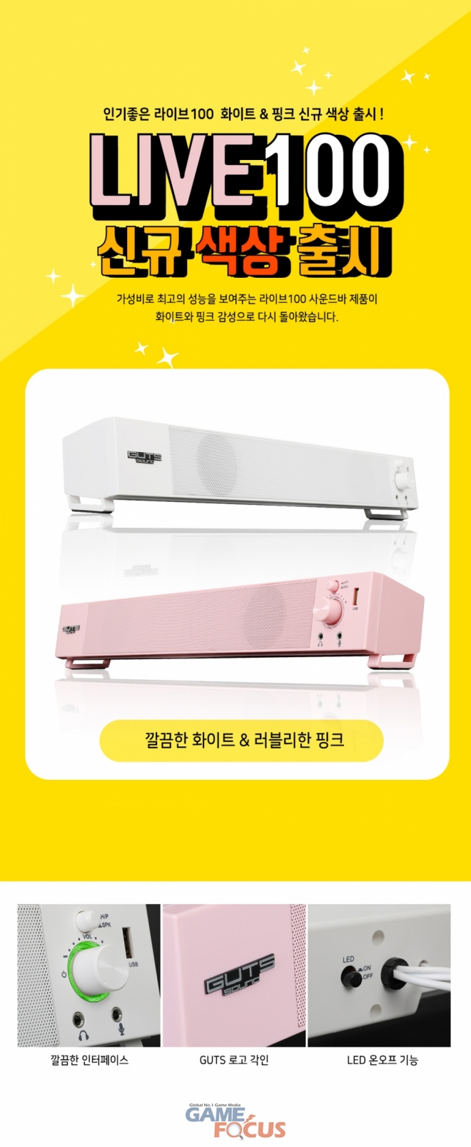 커스텀 수냉 PC 및 게이밍 기어 전문벤처기업 몬스타기어(대표 이승재)가 가성비는 물론 디자인까지 갖춘 컴퓨터 사운드바 '가츠 LIVE100' 핑크, 화이트 2종 모델을 추가했다.