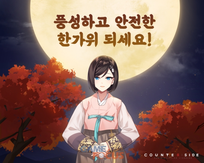 먼저, '카운터사이드'에서는 9월 29일부터 10월 15일까지 출석 일수에 따라 'SSR 사원 추천서', '기밀 채용 계약서' 등 보상 아이템을 제공하는 '한가위 기념 출근체크' 이벤트를 진행한다. 또, 같은 기간에 '미션', '메인스트림', '자유계약' 콘텐츠를 플레이하면 기념 아이템 '송편'을 지급하고 이를 '역량 평가서', '적성핵' 등 캐릭터 성장 아이템으로 교환하는 '송편 이벤트'를 실시한다.
