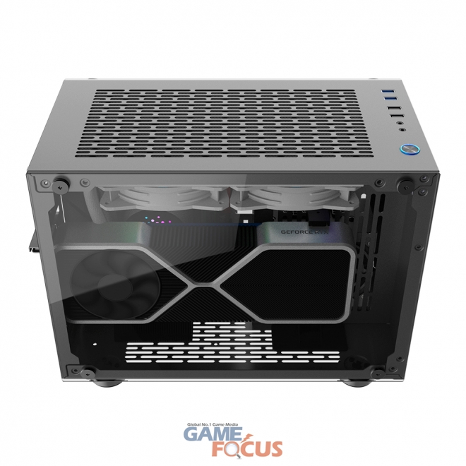 저장장치 확장성으로는 1개의 2.5” 장착을 지원하며, 추가적으로 3.5”와 2.5” 겸용 베이도 1개 갖추고 있다. 또한 편리한 사용을 위해 상단에 위치한 I/O 인터페이스로 USB3.0을 2개까지 연결 가능하며, 2개의 USB 2.0, HD 오디오, 마이크, 전원 버튼을 지원한다.
