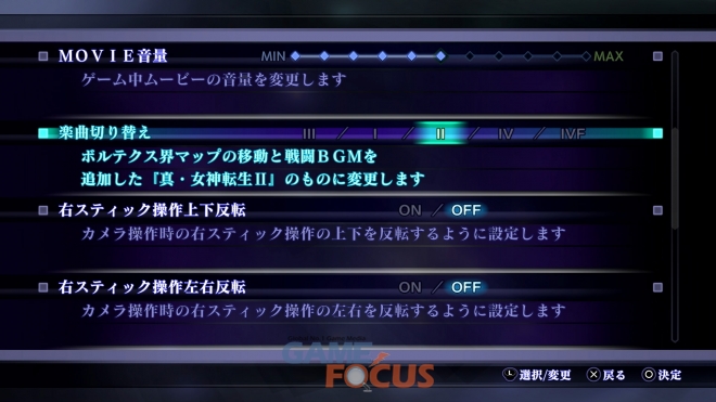 큰 맵 탐색 중과 배틀 중의 BGM을 '진・여신전생4 FINAL'의 것으로 언제든지 설정을 변경할 수 있게 된다.