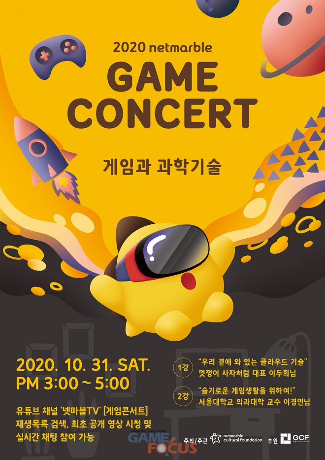 넷마블문화재단(이사장 방준혁)이 멋쟁이사자처럼 이두희 대표, 서울대학교 의과대학 이경민 교수가 '게임과 과학기술'이라는 주제로 강연하는 '2020 넷마블 게임콘서트'를 오는 31일(토) 오후 3시 유튜브 채널 넷마블TV를 통해 공개한다.
