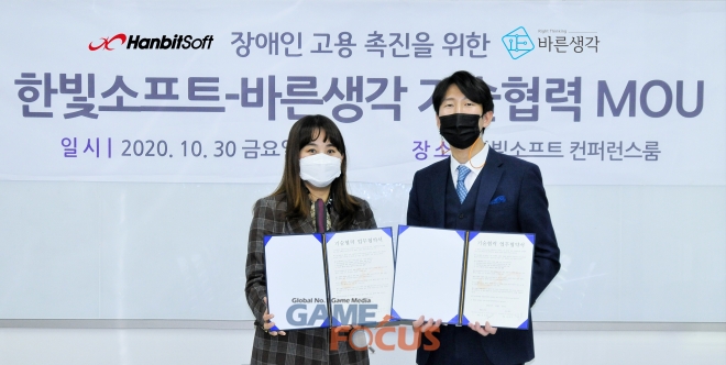 한빛소프트는 또한 바른생각과 장애인 고용 창출을 위한 제반 지원에도 적극 협력할 방침이다.