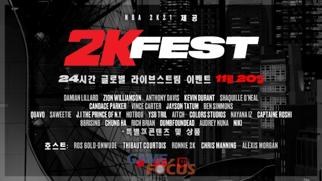 2K가 차세대 콘솔용 NBA 2K21의 전 세계 출시에 맞춰 NBA와 WNBA의 올스타 및 전설적인 선수들, 세계적인 아티스트, 인플루언서가 참여하는 24시간 글로벌 라이브 스트림 이벤트 '2KFest'를 오는 20일 진행한다.