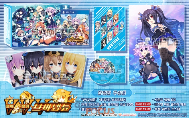 PlayStation4 'VVV넵튠'의 예약판매는 일반판과 한정판으로 나누어 진행되며, 초회생산제품에는 초회판매특전이 포함되어 있다. 초회판매특전 및 한정판 구성품은 다음과 같다.