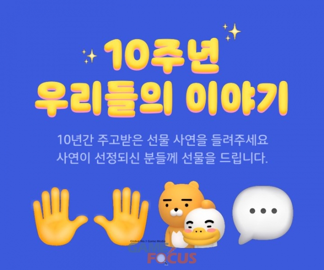 먼저, 카카오톡 선물하기는 이용자들이 주고받은 선물에 얽힌 사연을 모집하는 '10주년, 우리들의 이야기' 프로모션을 진행한다. 감동적인 선물, 주고받았던 선물 중 가장 특이한 선물, 같은 제품을 수십 명에게서 받았던 웃지 못할 사연 등 기억에 남는 선물 사연을 모집한다.