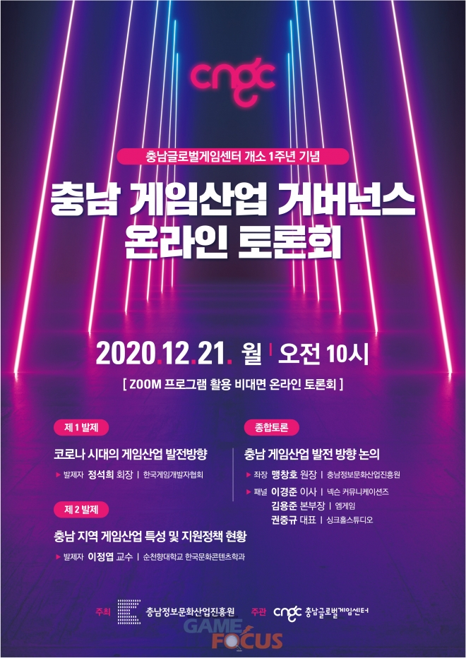 충남정보문화산업진흥원(원장 맹창호, 이하 진흥원)은 충남글로벌게임센터 개소 1주년을 맞아 21일 오전 ‘포스트 코로나시대 충남게임산업 발전전략 지역 거버넌스 온라인 간담회’를 개최했다.