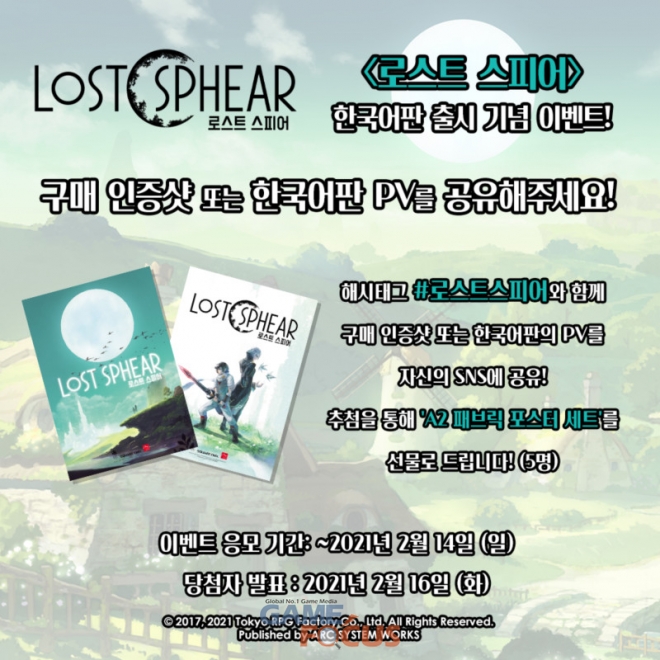 아크시스템웍스 아시아지점이 SQUARE ENIX CO., LTD.의 산하 개발 스튜디오 Tokyo RPG Factory Co., Ltd.(이하 도쿄 RPG 팩토리)에서 개발한 RPG '로스트 스피어'의 PlayStation4와 Nintendo Switch 한국어 번역판을 정식 출시하고 출시 기념 이벤트를 진행한다.
