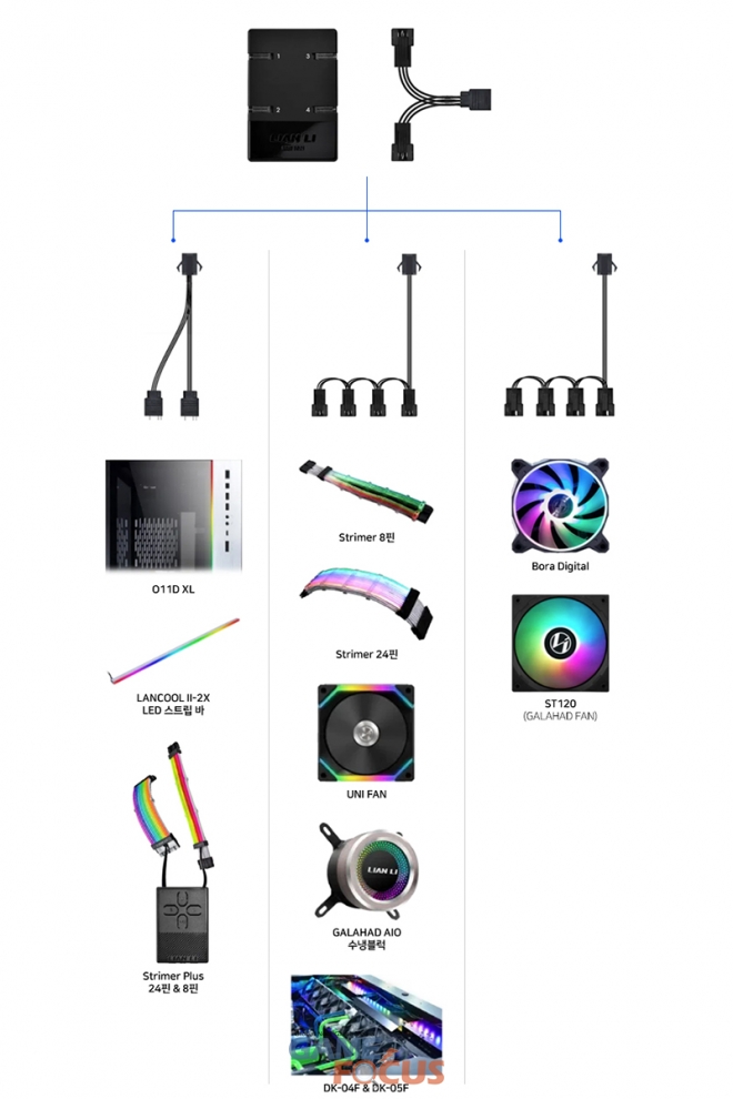 이러한 다양한 케이블들은 리안리 동사의 O11D XL PC케이스, 스트리머 플러스 ARGB 24핀/8핀 케이블, 유니팬 SL120/140, 갈라하드 일체형 수랭 쿨러 제품 등이 각 제품에 알맞은 스플리터 혹은 익스텐션 케이블을 통해 하나의 컨트롤러로 통합 제어가 가능해진다. 이렇게 한데 묶인 구동 환경은 사용자에게 간편한 설치 및 관리 환경을 제공한다.