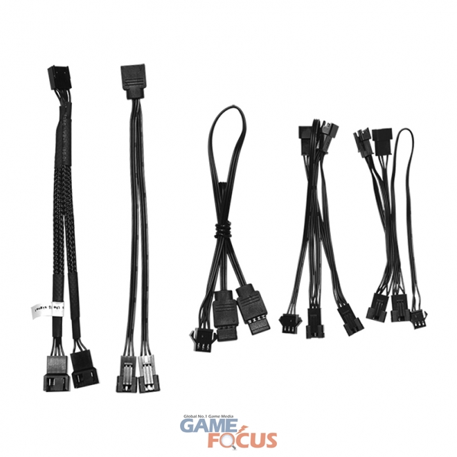 리안리의 ARGB 케이블 킷은 Addressable RGB, 즉 주소 지정 RGB 조명 제어를 뜻하는 ARGB 에 대응하는 다양한 액세서리 제품의 추가 연결이 용이하도록 해주는 제품으로서, 총 5 종류의 케이블들이 동봉되어 있다.