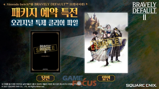 BRAVELY 시리즈 완전 신작 RPG Nintendo Switch용 'BRAVELY DEFAULT II'(한국어 번역판) 패키지 버전의 예약 판매는 2021년 2월 5일 (금)부터 시작되며, 2월 26일 (금) 발매된다.