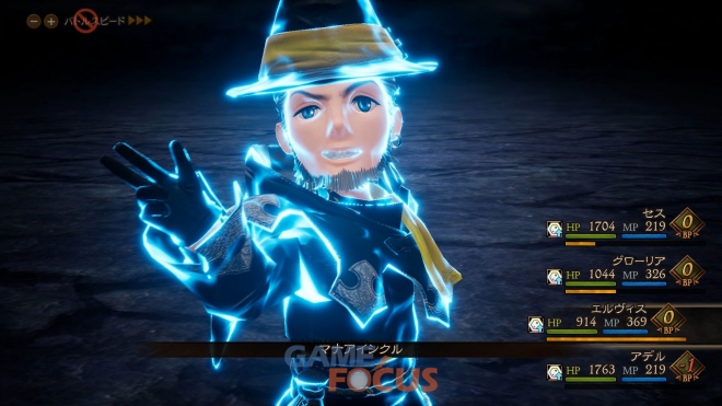 전투 중의 행동을 지배하는 'BP(브레이브 포인트)'를 관리하면서 “브레이브 or 디폴트” 어느 쪽을 언제 사용할 지 전략을 짜는 것이 배틀의 승패를 가른다.